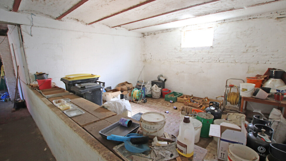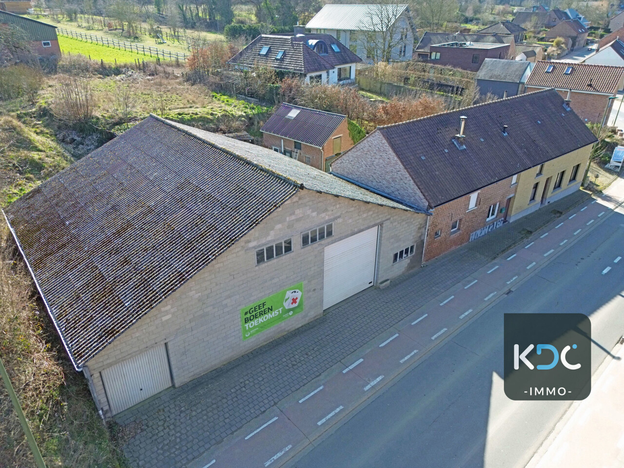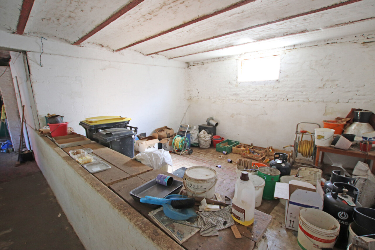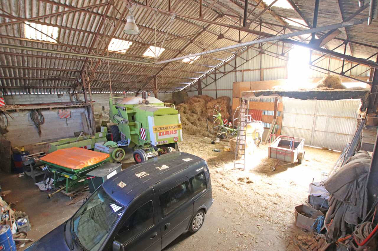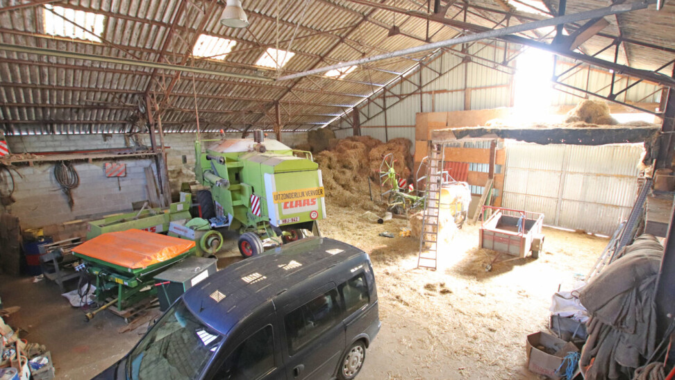 Loods: 15m op 18m, voorzien van poort met een hoogte van 4meter. Stalling van 55m², 60m² bijgebouwen buiten, tuin.