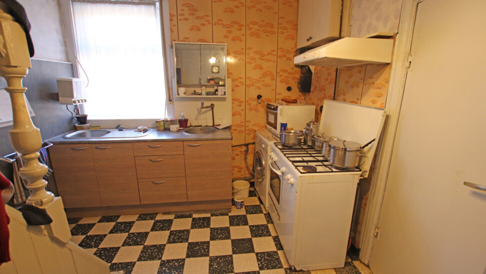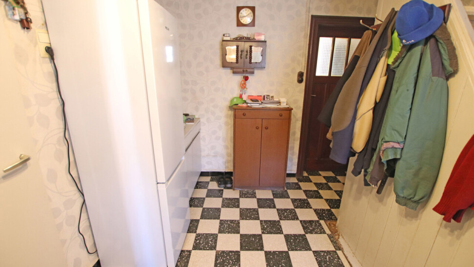 Gelijkvloers: inkom, eetplaats, keuken, woonkamer en 2 slaapkamers.