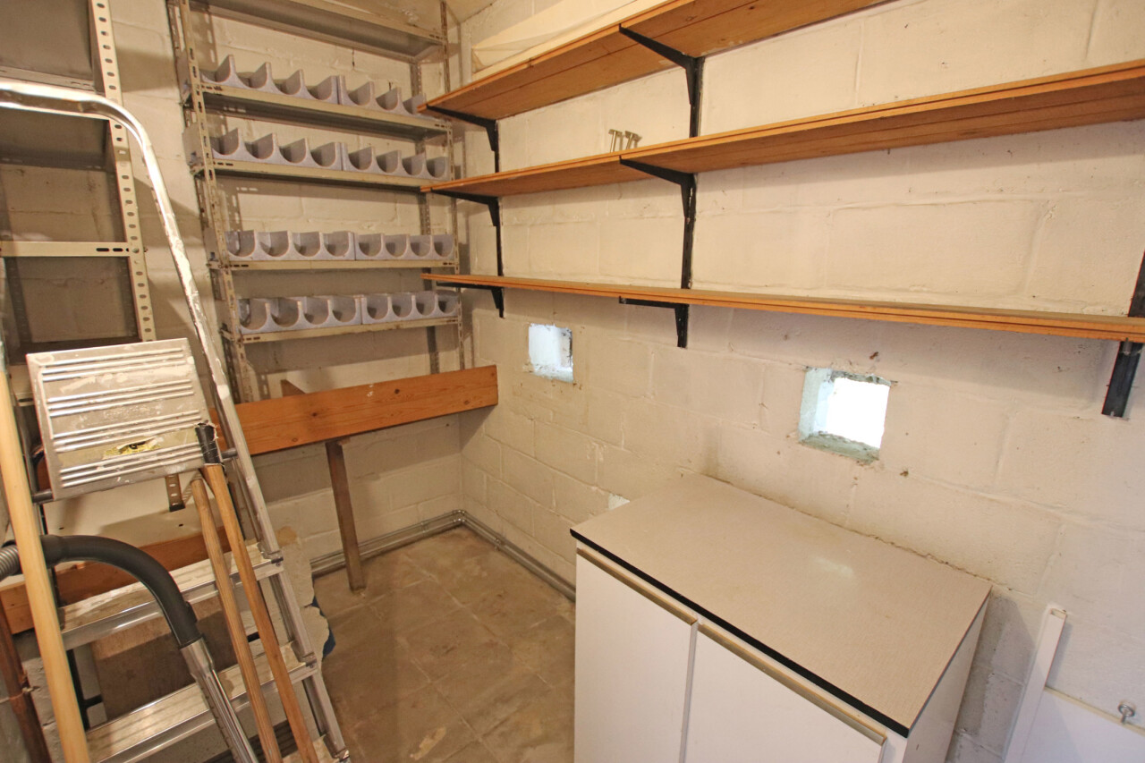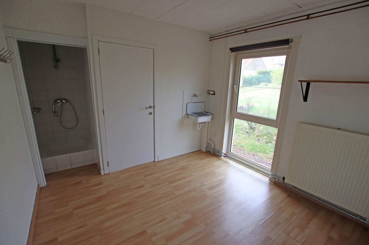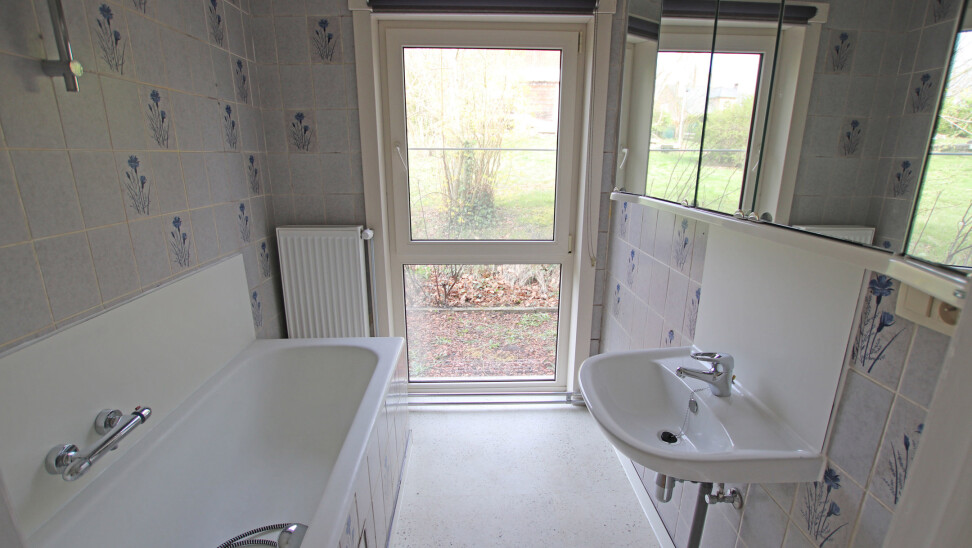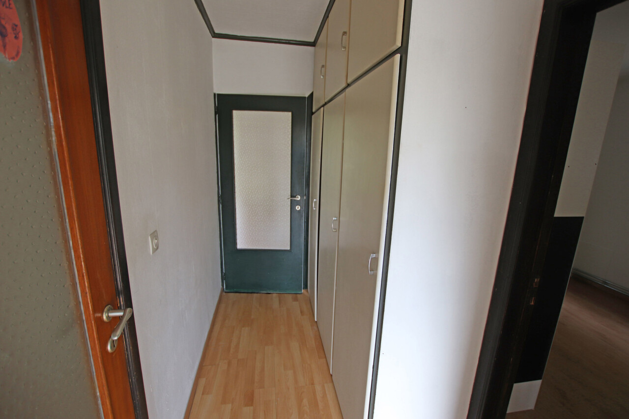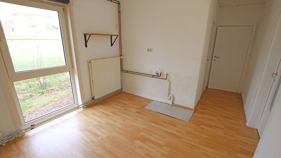 Gelijkvloerse verdieping: inkomhal met apart toilet, 23m² woonkamer met nieuwe laminaat, keuken met fornuis en dampkap, nachthal met kasten, slaapkamer 1 (10m²) met kast, slaapkamer 2/bureau (9m²) met kast, ingerichte badkamer met ligbad en 1 wastafel, wasplaats met douche, berging.
