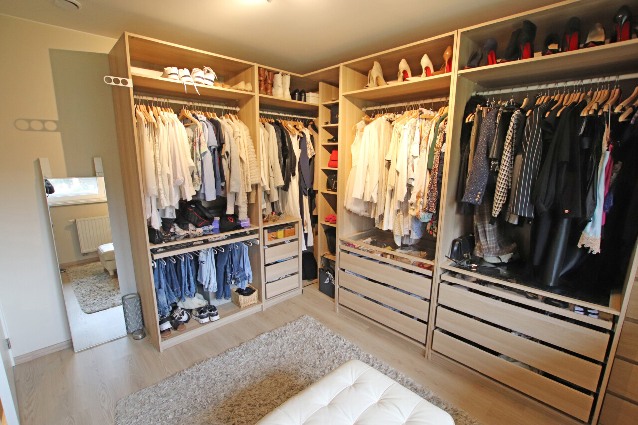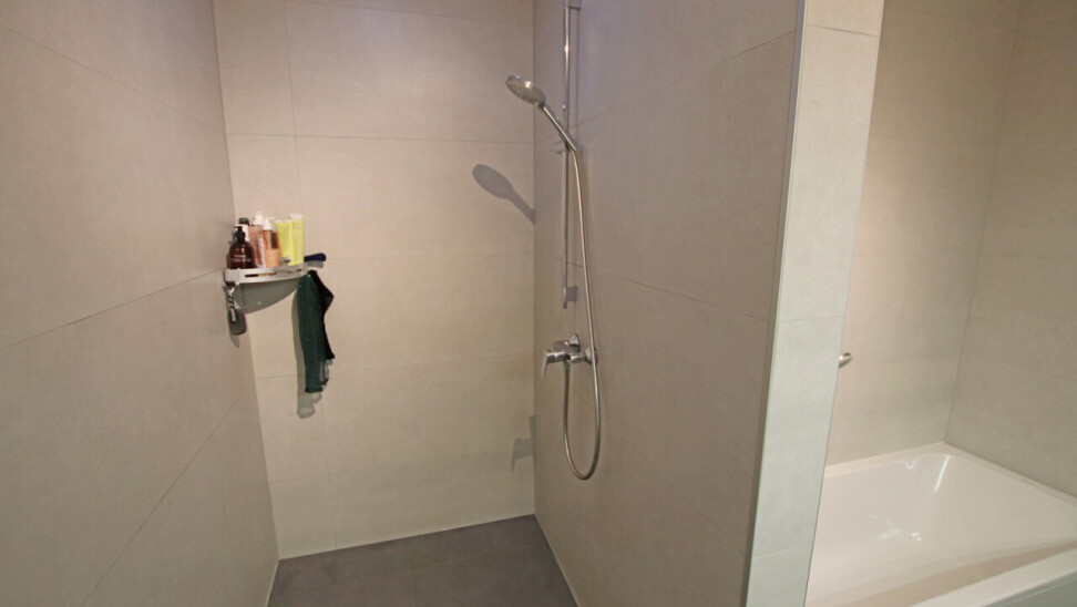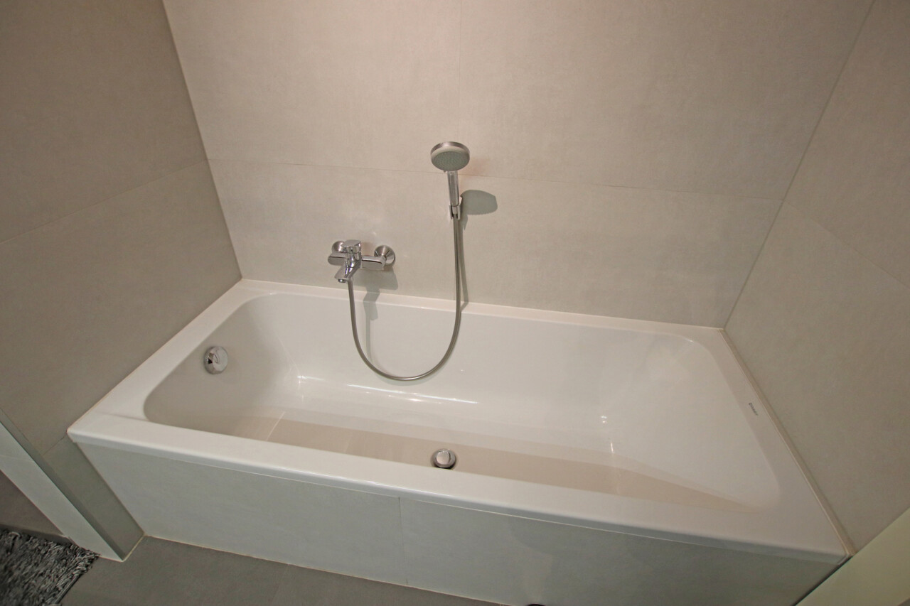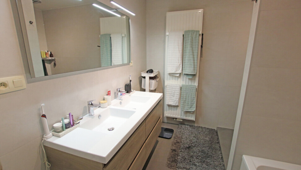 Eerste verdieping (tegelvloer): nachthal, apart toilet, slaapkamer 1 (16m²) met ensuite badkamer (douche en 1 wastafel in meubel), slaapkamer 2 (13m²), slaapkamer 3 (13m²), slaapkamer 4 (12m²), ingerichte badkamer met inloopdouche, ligbad en dubbele wastafel in meubel.