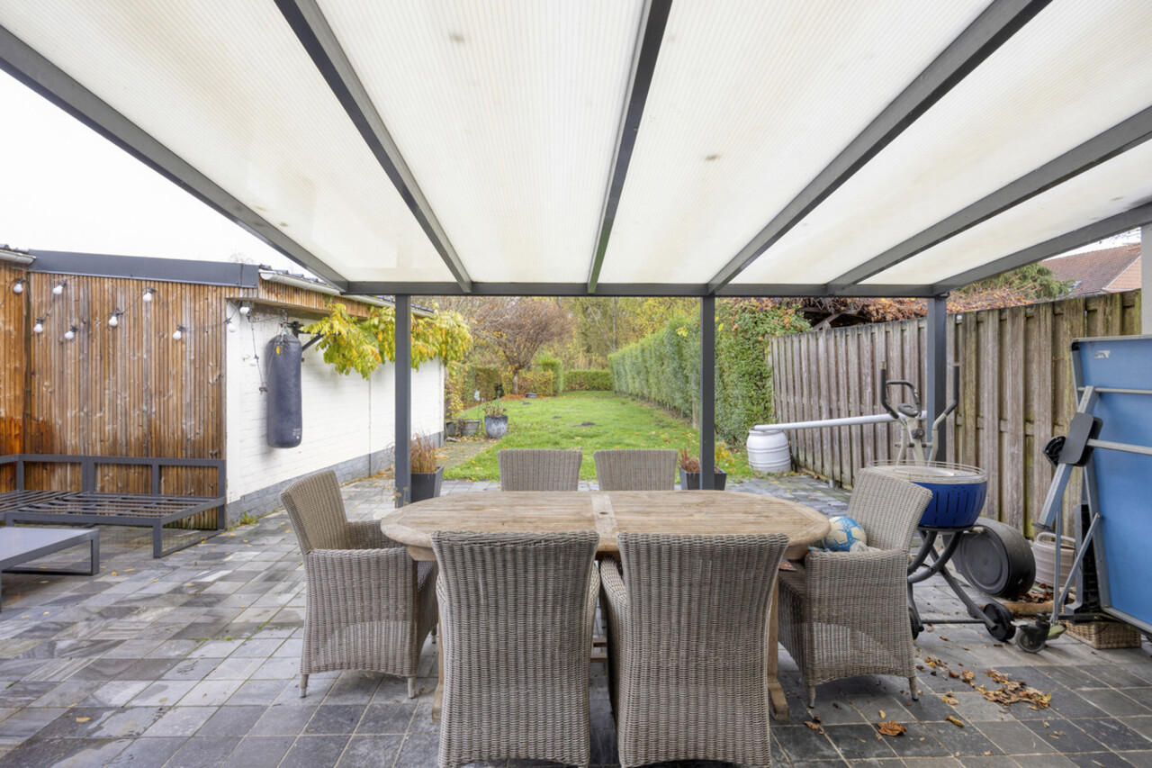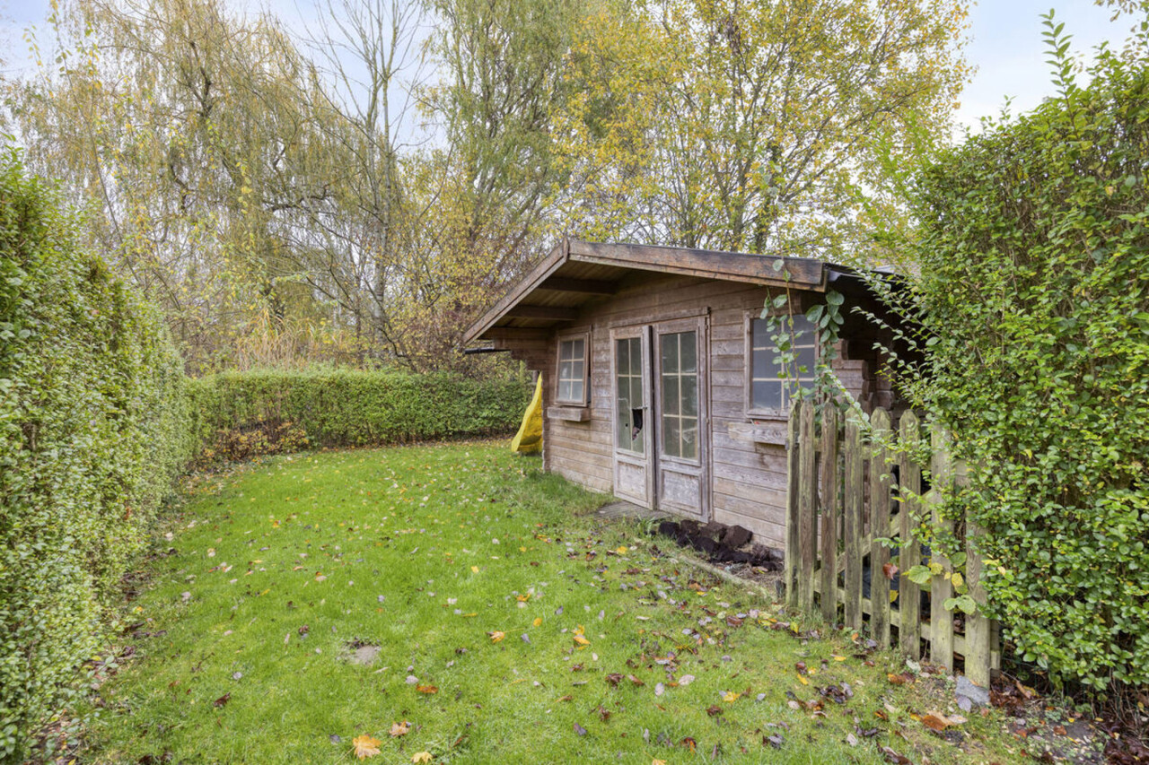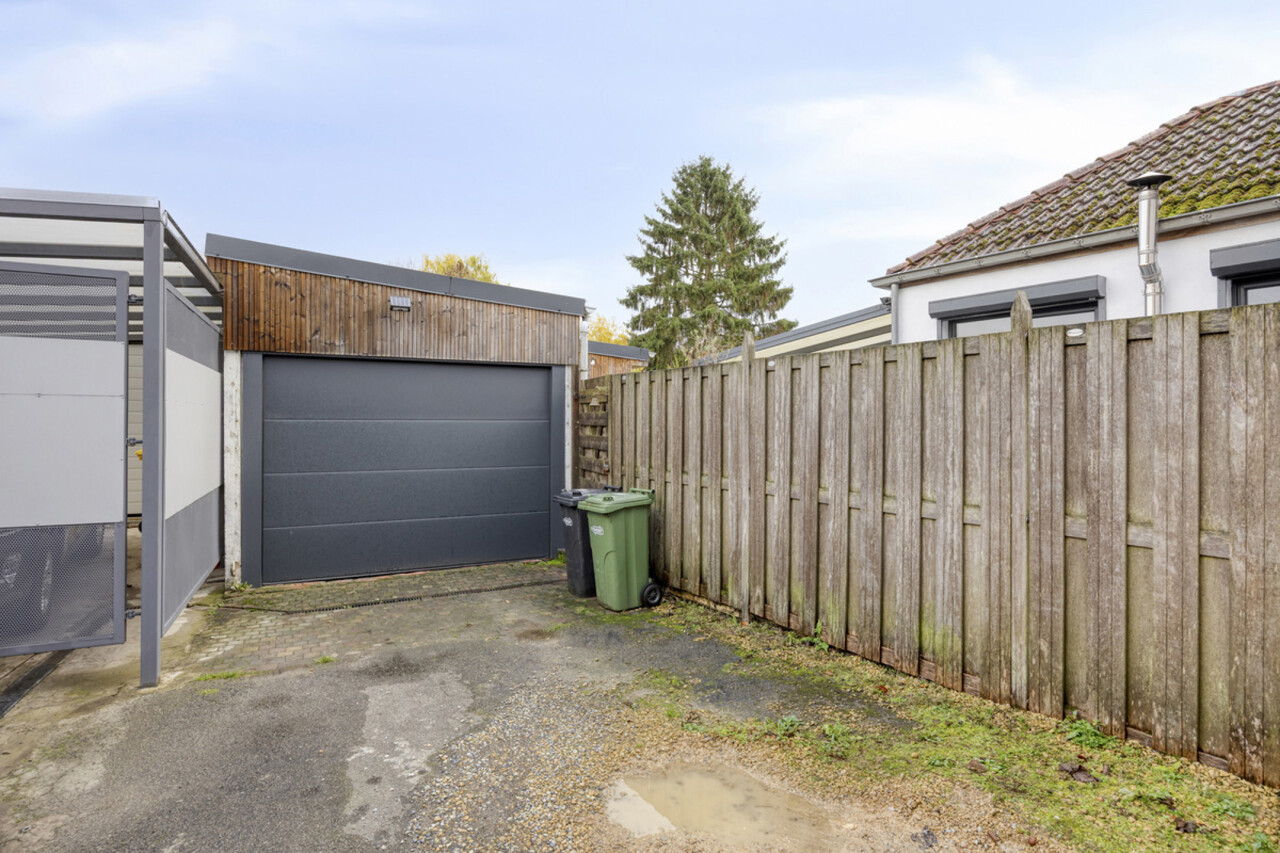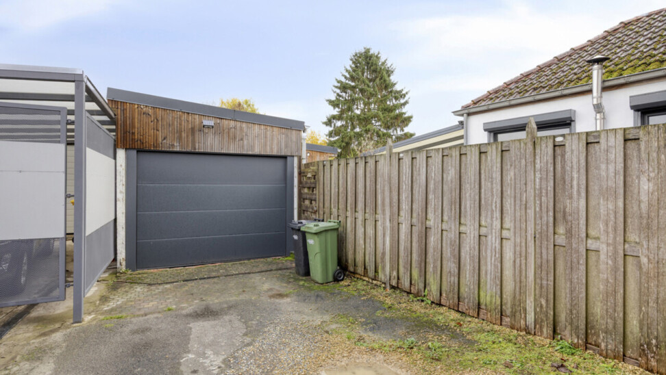 Buitenruimte: overdekt terras, privatieve tuin met tuinhuis, garage/berging en extra parkeerplaats.