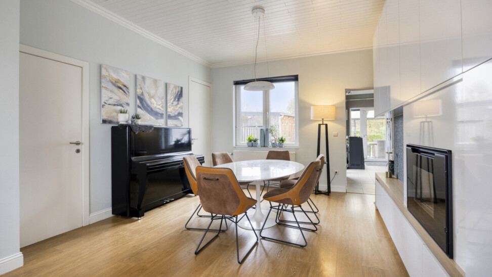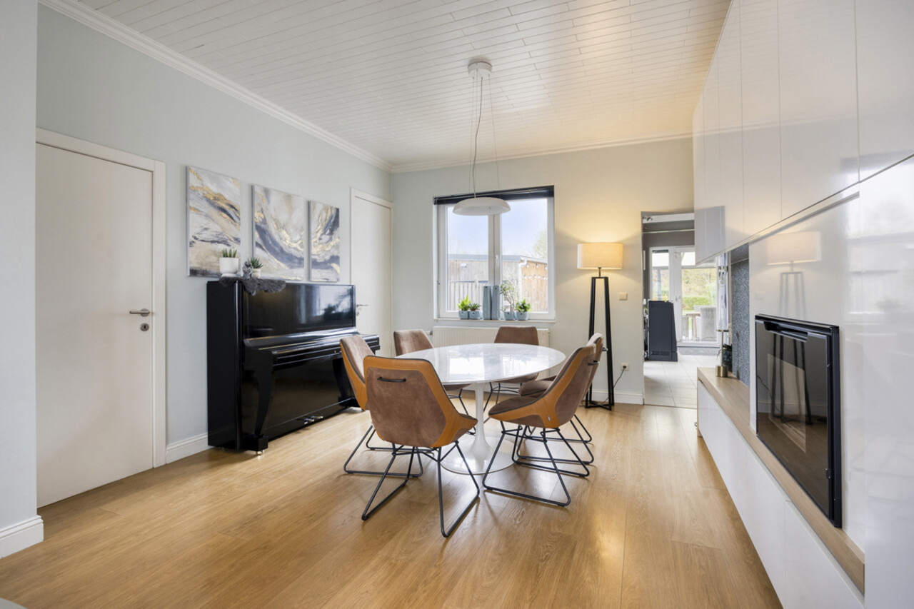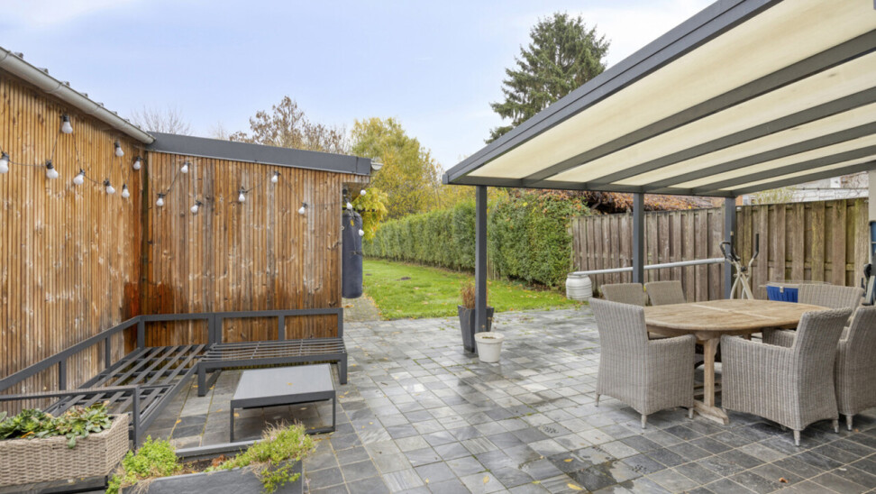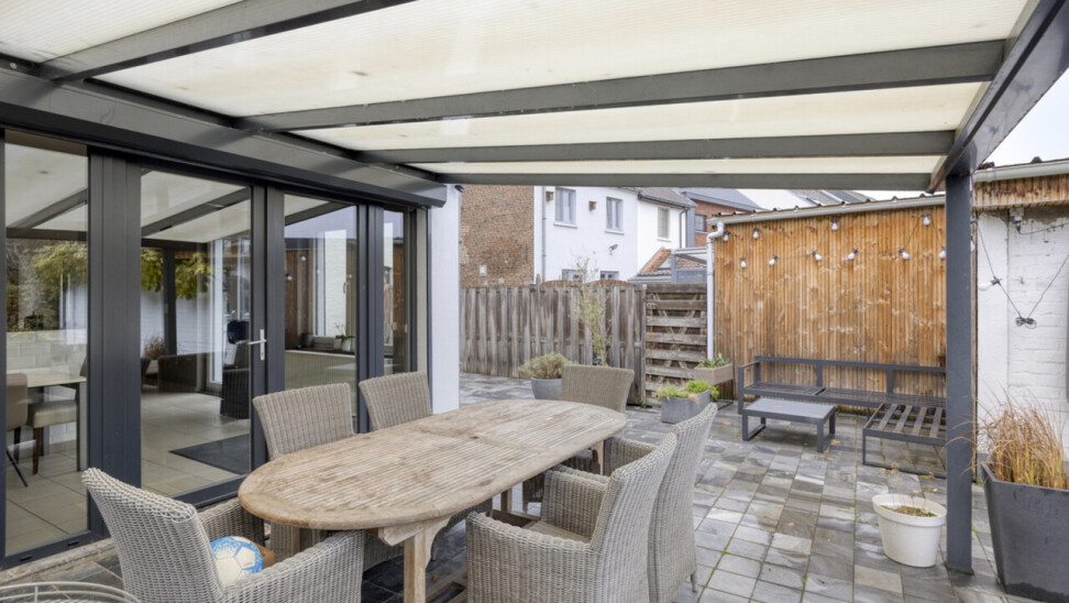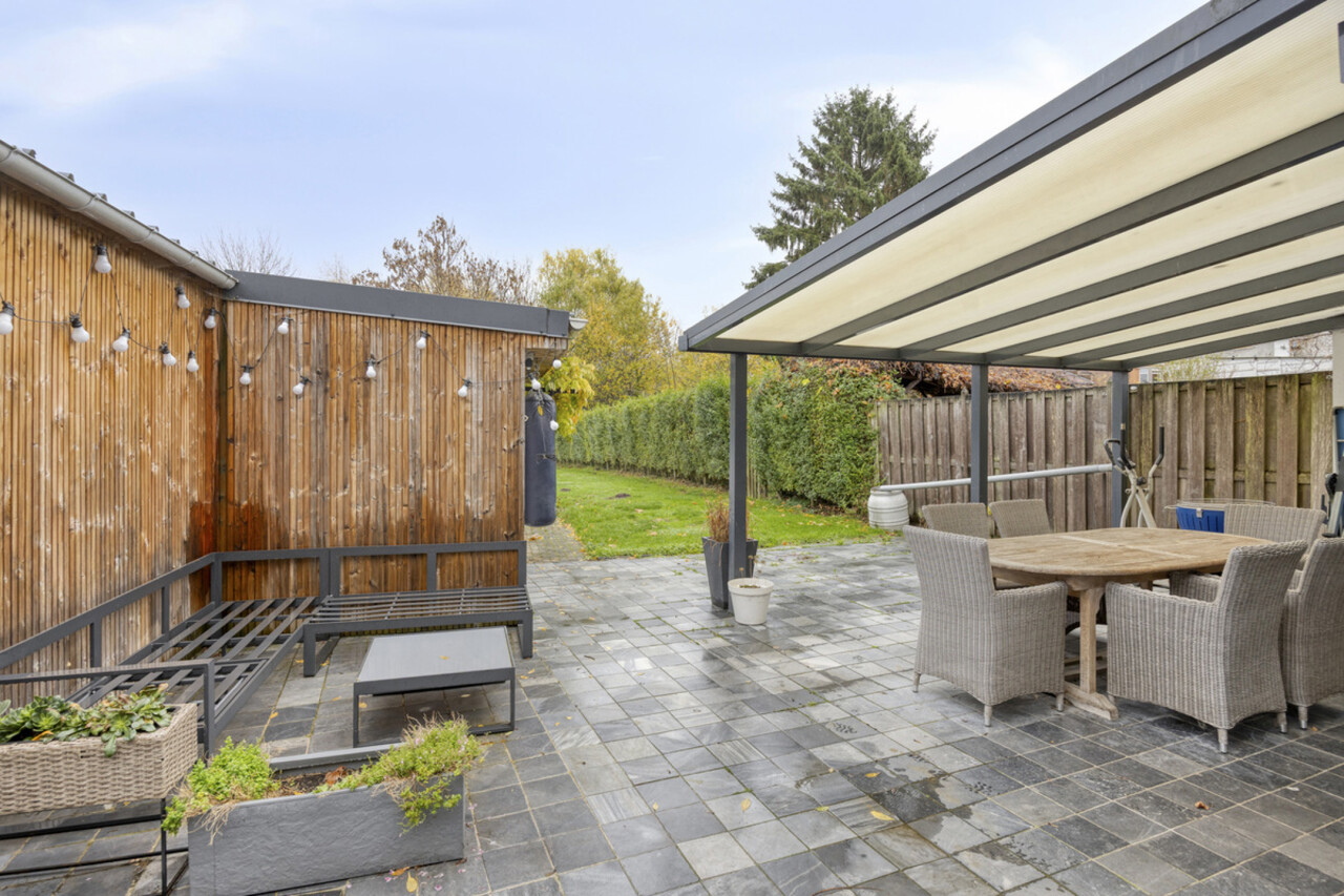 Buitenruimte: overdekt terras, privatieve tuin met tuinhuis, garage/berging en extra parkeerplaats.
