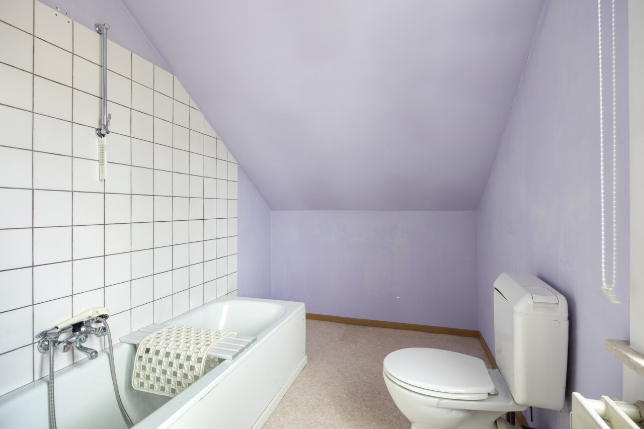 Verdieping 1: nachthal, slaapkamer 1 (15m²), slaapkamer 2 (9m²), door naar slaapkamer 3 (15m²), badkamer met ligbad, wastafel in meubel en toilet.