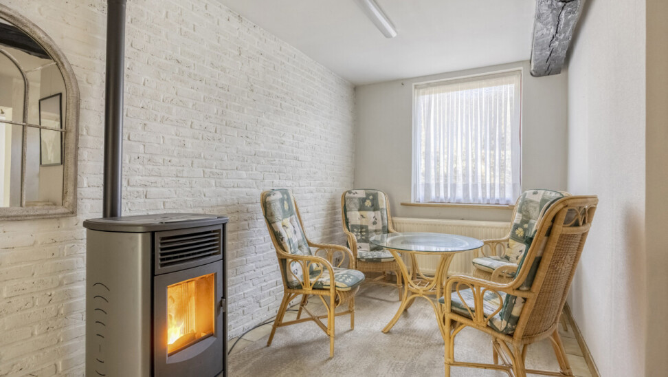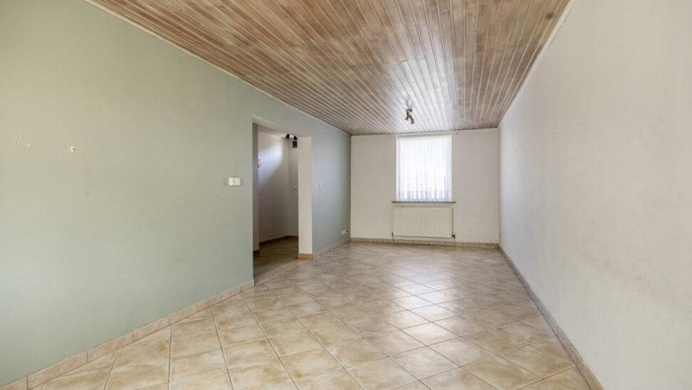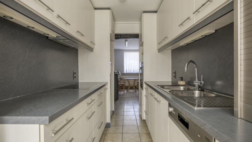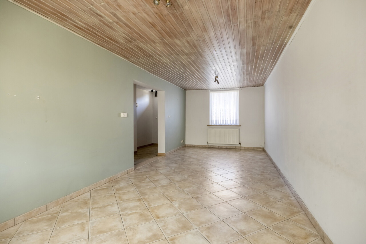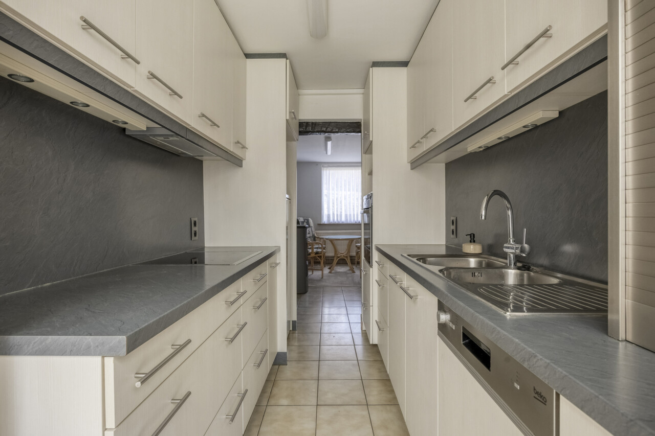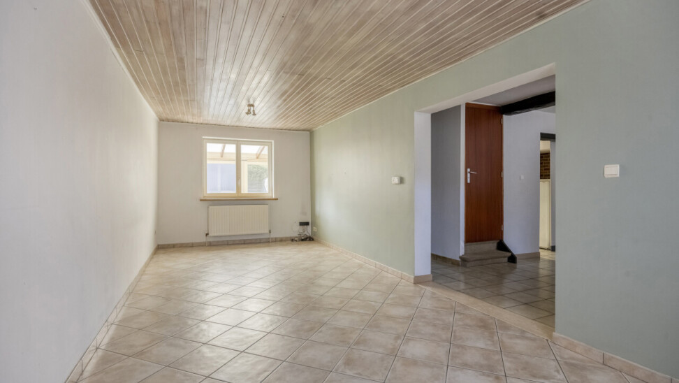 Gelijkvloerse verdieping: inkomhal met apart toilet, 25m² woonkamer, eetkamer/zithoekje, recente volledig ingerichte keuken (2012), ruime veranda (20m²), garage 1 (25m²), garage 2 (23m²), gezellig tuintje met terras, 2 buitenbergingen, leuke serre.